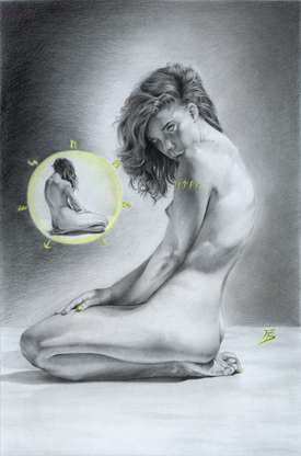 Dessin aux crayons graphite sur carton Bristol Canson XL 11.5 x 19 / modèle pour tatou sur commission pour dos
